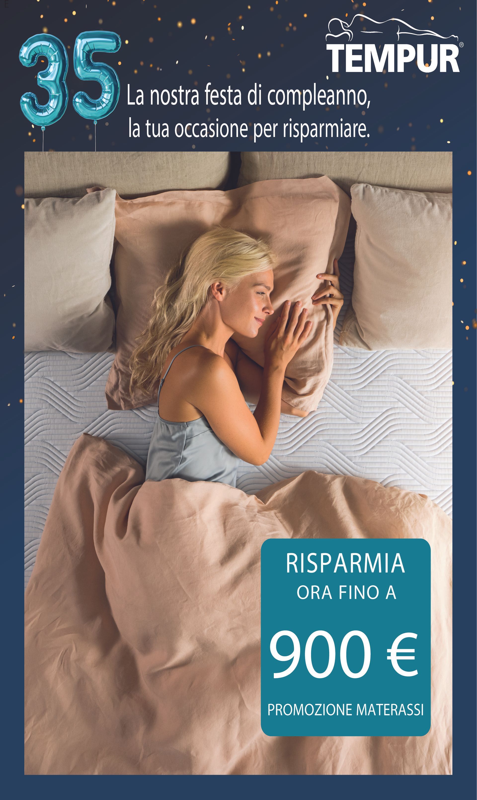 Festeggia con noi il 35° anniversario TEMPUR, e risparmia fino a 900 euro sull'acquisto del tuo nuovo materasso.